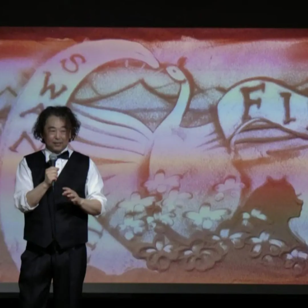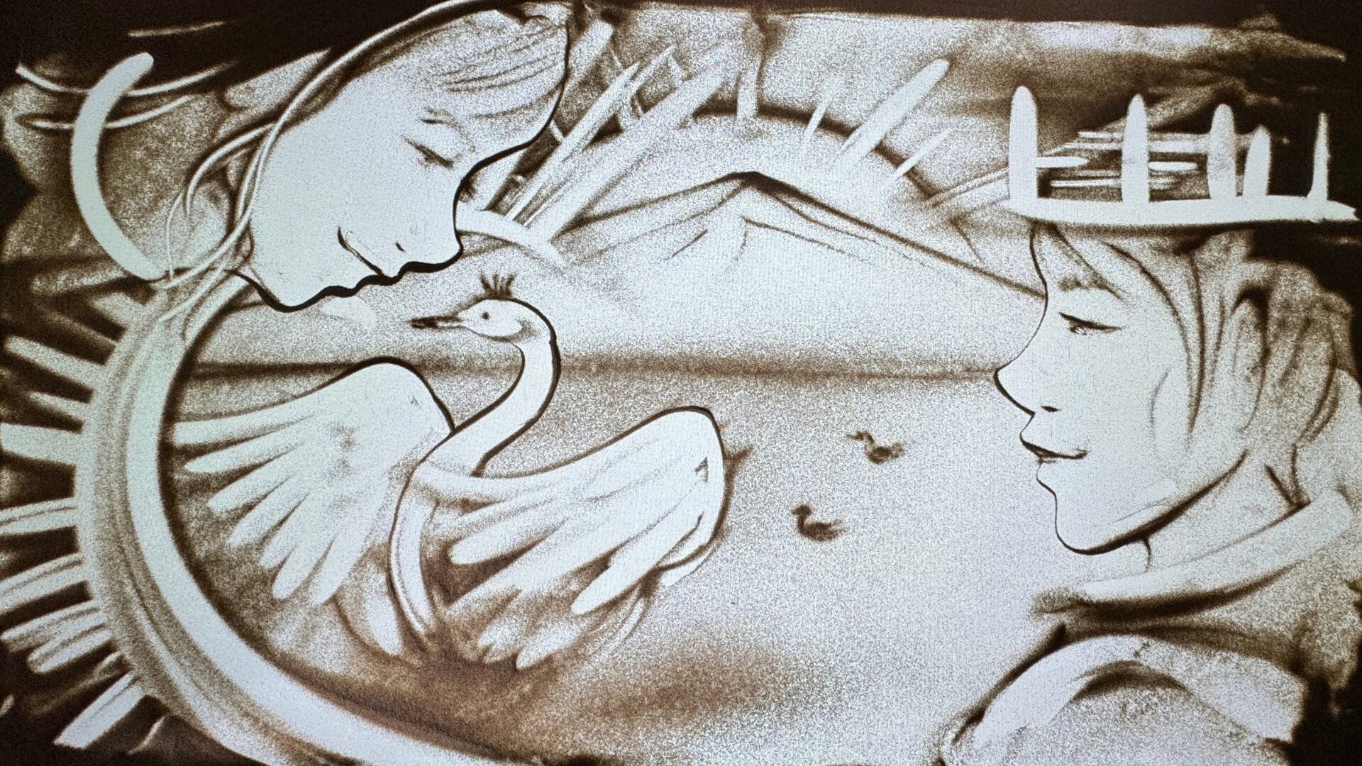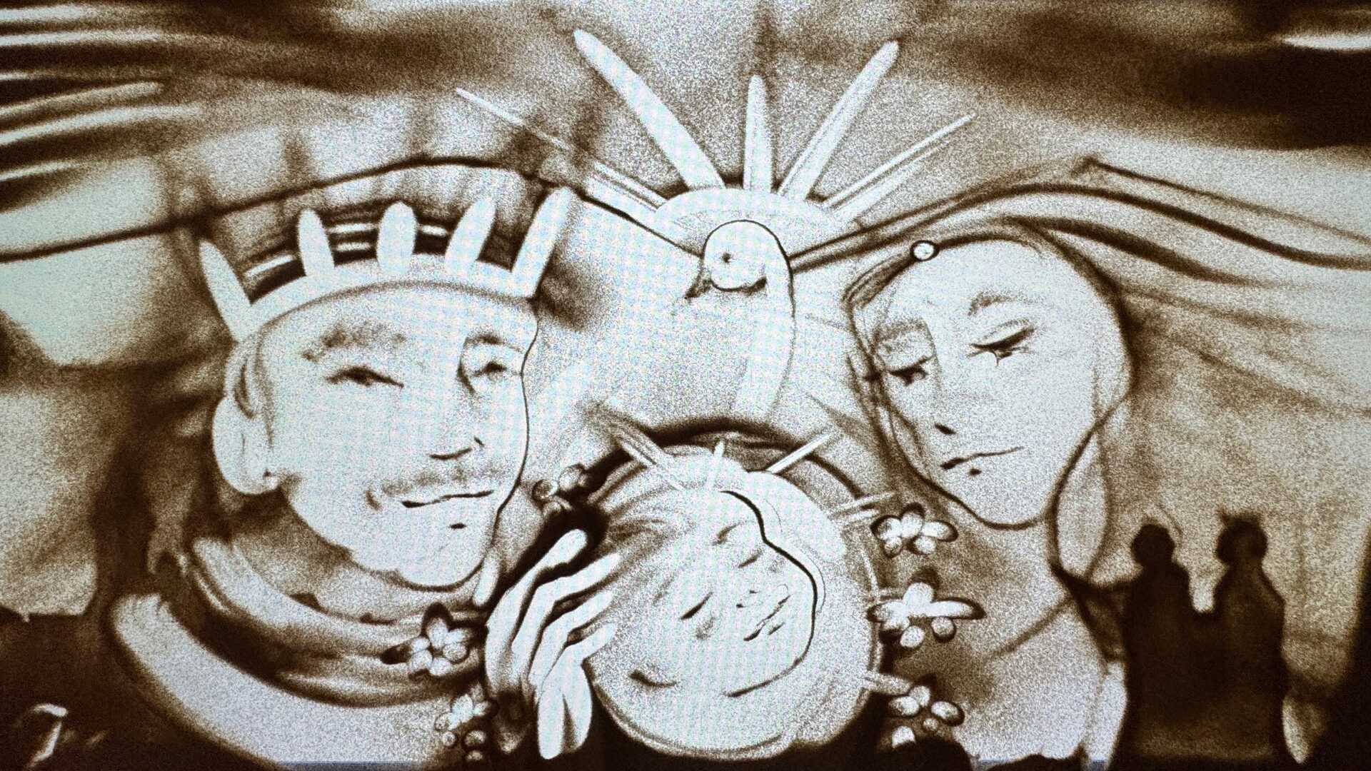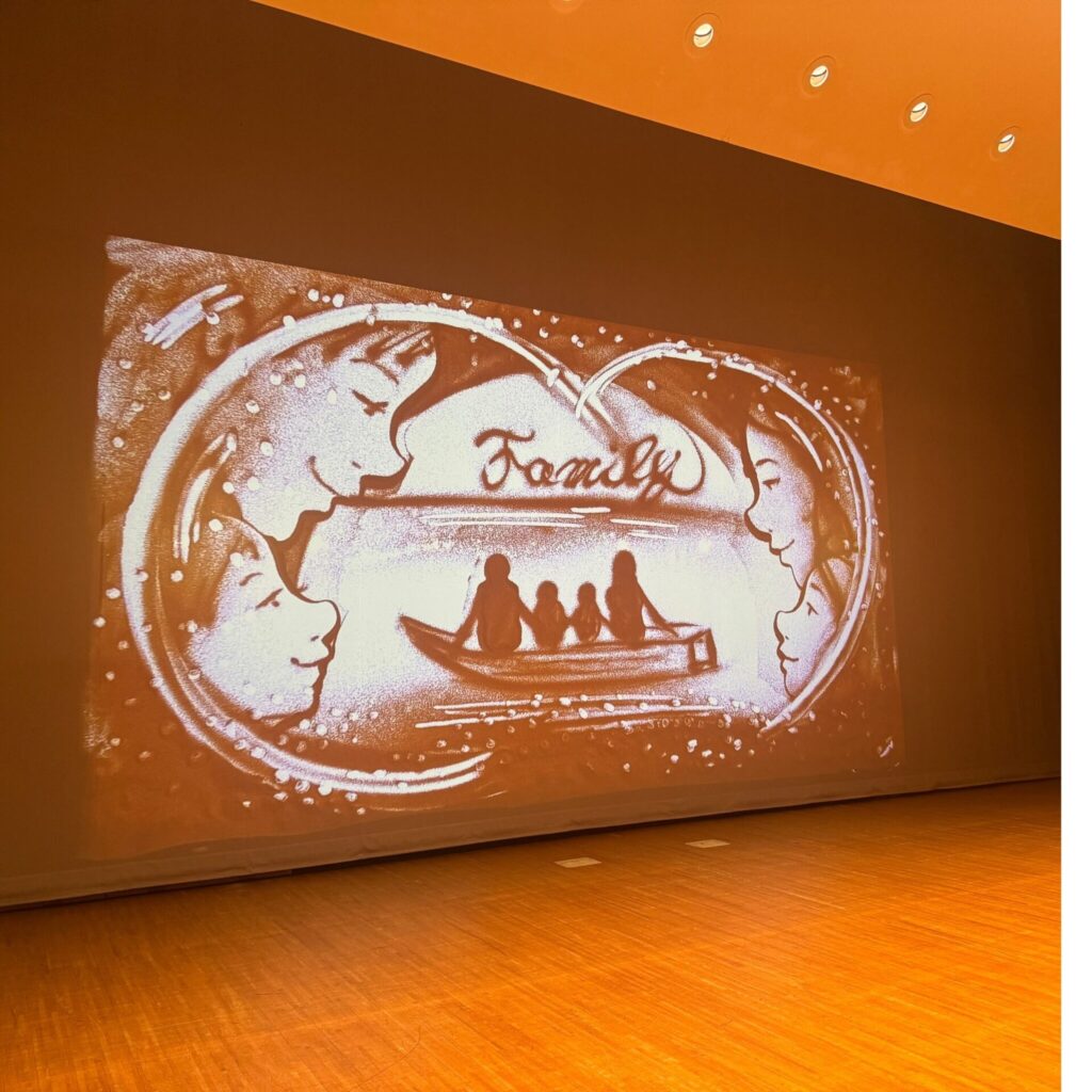 一粒一粒の砂が織りなす光と影。まるで魔法のように次々と移ろう情景。音楽とともに紡がれる物語は見る人の心に深い感動を残します。一つの作品は、なめらかな動きで次の情景へと姿を変えていきます。その一瞬一瞬が特別な輝きを放ち、観る人全てを物語の世界へと誘います。